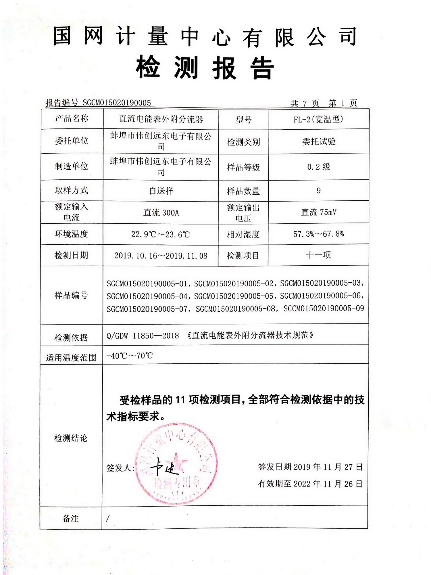 蚌埠市雙環電子集團股份有限公司旗下全資子公司-蚌埠市偉創遠東電子有限公司現已成功通過國家電網2019年直流電流表外附分流器測試,型號為FL-2 300A,75mV,0.2級。這是國內目前唯一一家在寬溫型下經國家電網計量中心測試合格的分流器。雙環品質,值得信賴!雙環集團將不斷開發出高品質的新產品來滿足客戶需求,為客戶創造價值,服務社會!
