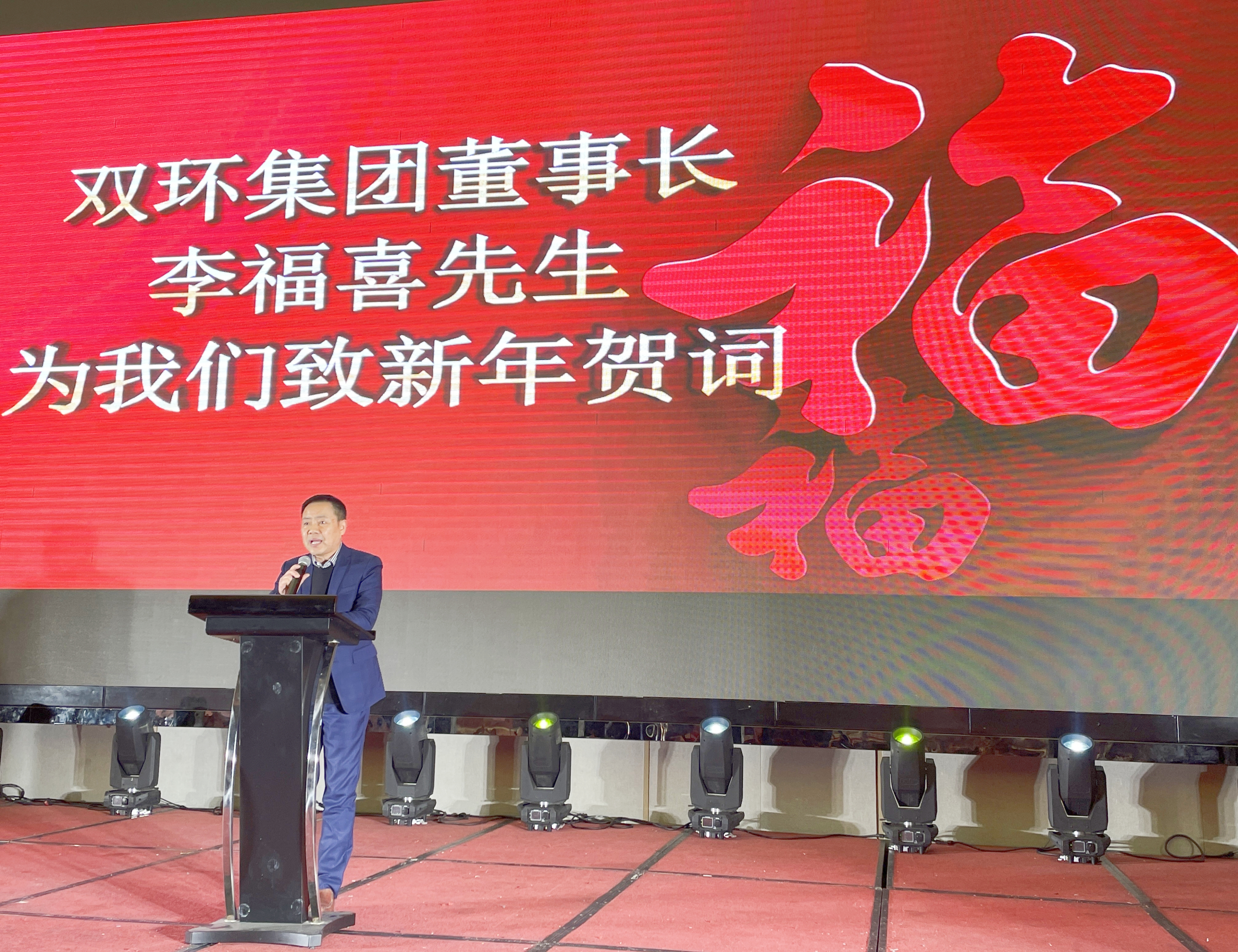 集團(tuán)董事長(zhǎng)李福喜先生發(fā)表了熱情洋溢的新春致詞,他回首過去一年公司的成長(zhǎng)歷程,對(duì)全體員工的辛勤付出表達(dá)了由衷的贊揚(yáng),并寄語新的一年,期待大家繼續(xù)同心同德、群策群力,共創(chuàng)公司更輝煌的未來。這段充滿力量與溫情的話語,生動(dòng)再現(xiàn)了雙環(huán)集團(tuán)在過去一年中面對(duì)困難挑戰(zhàn),以團(tuán)結(jié)奮進(jìn)的精神風(fēng)貌書寫出不凡篇章。
